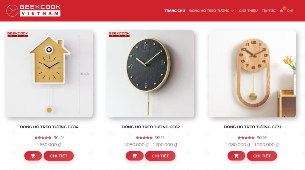 1 - Truy cập trang Geekcook.vn, bấm xem chi tiết và lựa chọn sản phẩm phù hợp với không gian nhà, văn phòng cần treo đồng hồ