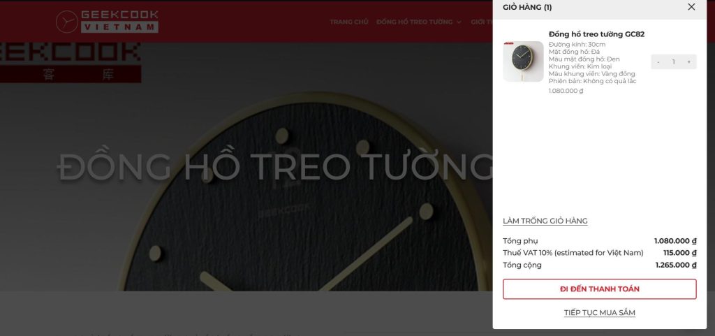 Bài viết nội dung hướng dẫn cách thao tác mua đồng hồ treo tường Geekcook online trực tiếp tại trang Geekcook.vn