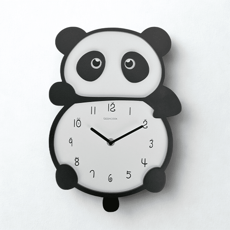 - Kiểu dáng: Đồng hồ treo tường kết hợp chi tiết gấu trúc Panda lắc trang trí